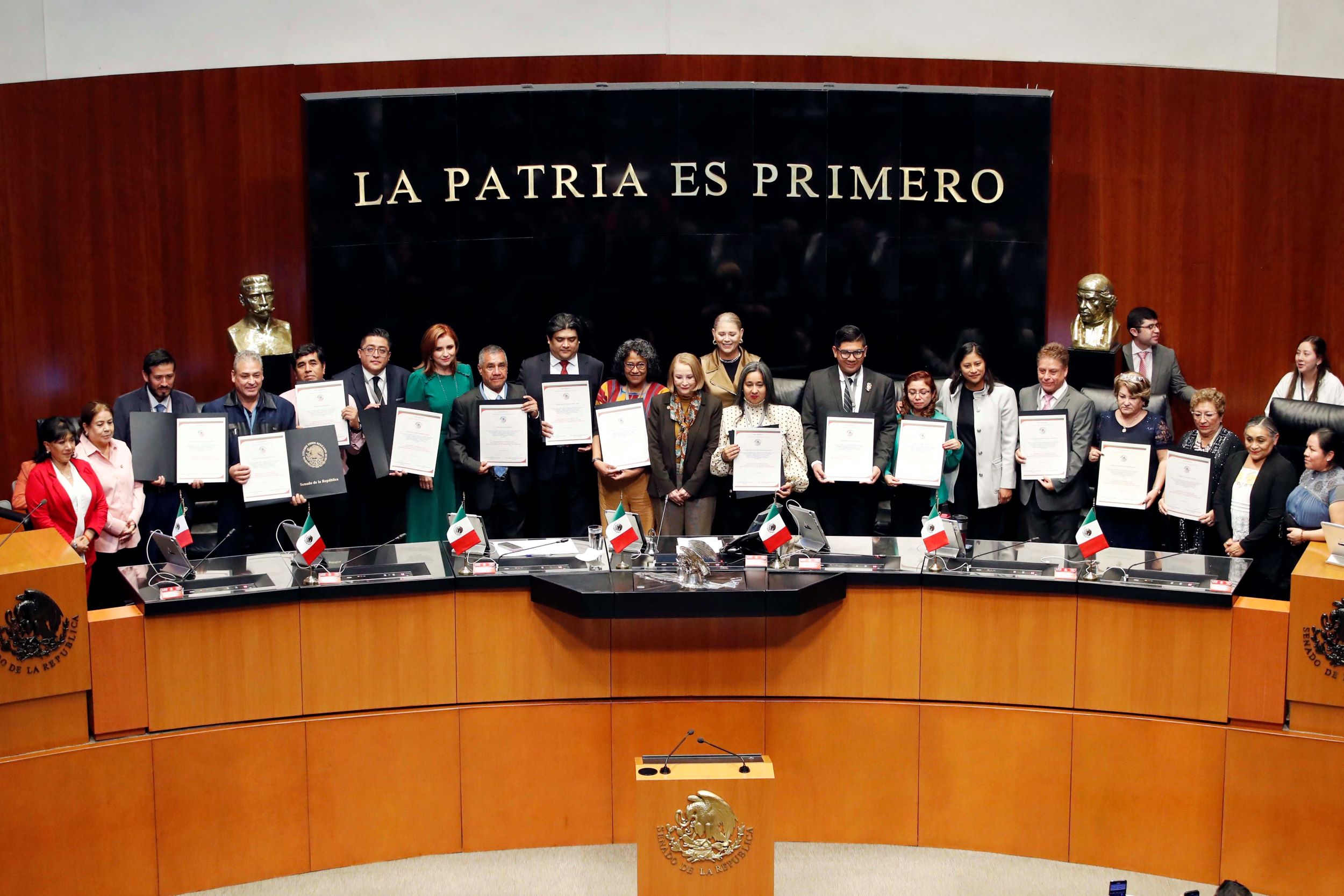 Méndez Ñeco acudió al Senado de la República donde rindió protesta a su cargo ante la presidenta de la Mesa Directiva, Laura Itzel Castillo Juárez.