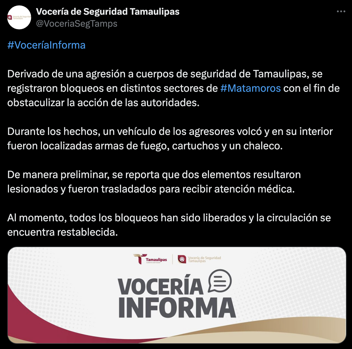 — Vocería de Seguridad Tamaulipas (@VoceriaSegTamps) September 3, 2025