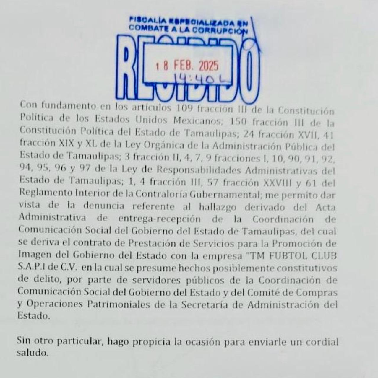 La Fiscalía Anticorrupción de Tamaulipas realiza la investigación sobre dicho desvío que se realizó a través de la asignación de contratos ilegales de la dependencia de comunicación del gobierno estatal.
