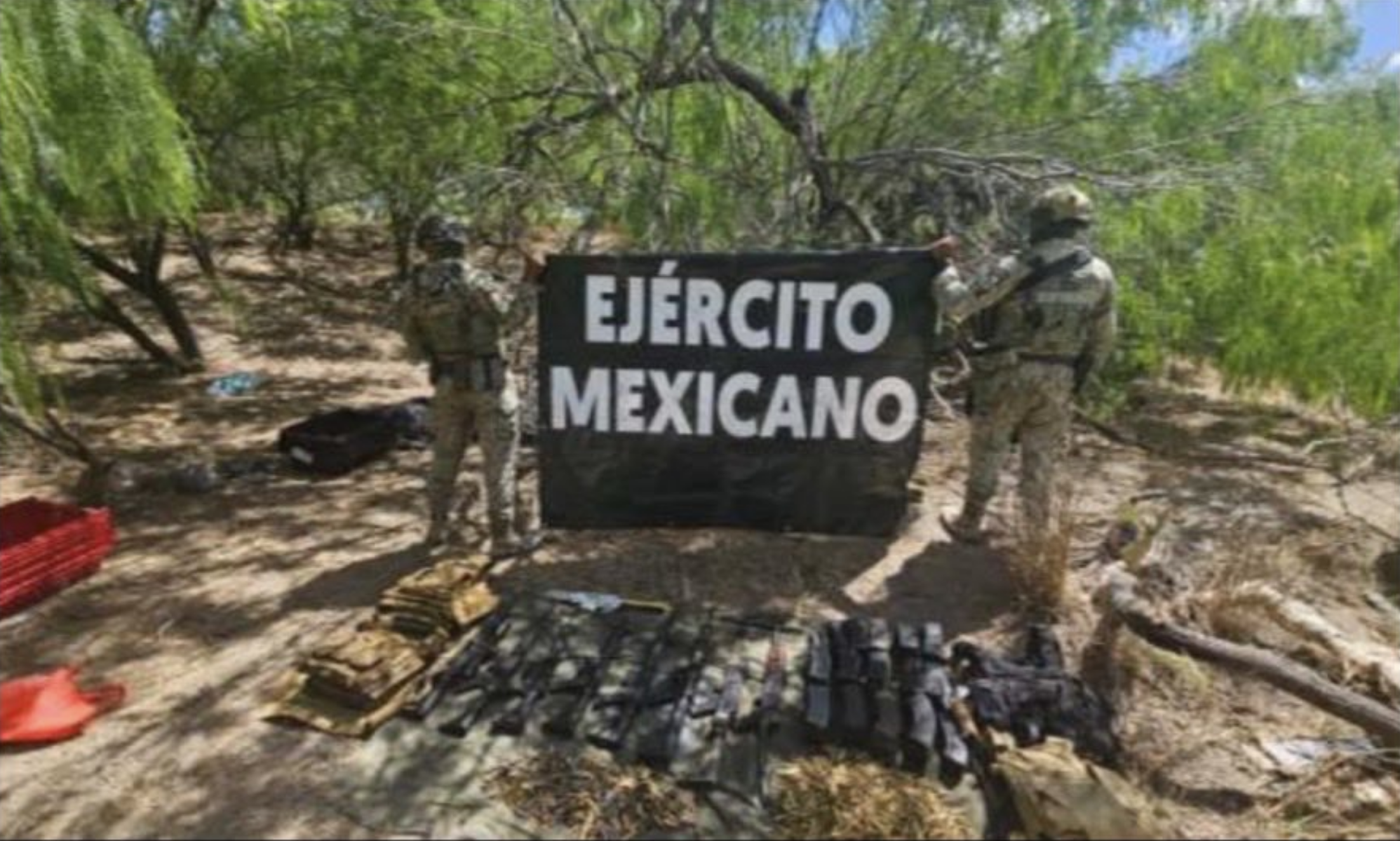 Elementos del Ejército Mexicano aseguraron armamento durante patrullajes de vigilancia y reconocimientos a inmediaciones del poblado El Control en el municipio de Matamoros como parte de la Estrategia Nacional de Seguridad Pública.