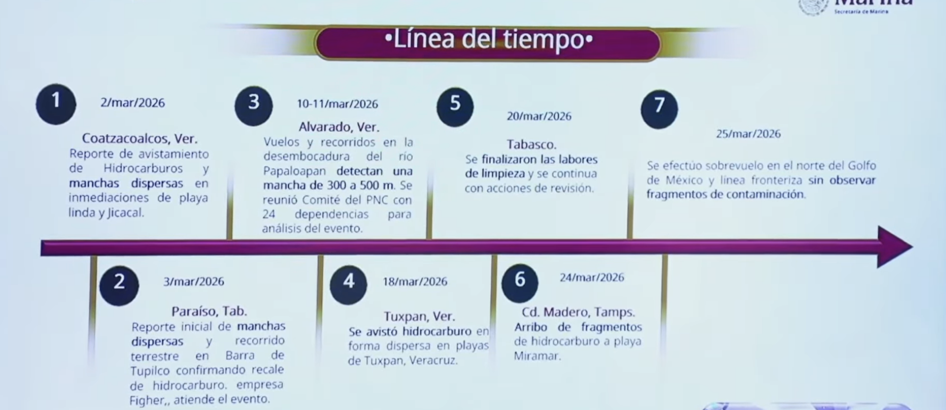 De acuerdo con los datos presentados por el grupo, el arribo de fragmentos de hidrocarburo a la zona de Playa Miramar se dio desde el pasado 24 de marzo.