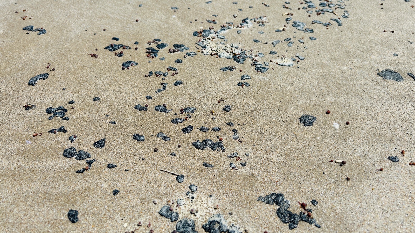 En un recorrido hecho por al menos tres kilómetros de la playa del sur de Tamaulipas, se pudieron observar numerosos fragmentos, de tamaño pequeño, y otras manchas más extensas de hidrocarburo.