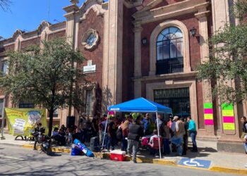 Cerca de 50 trabajadores de las jurisdicciones sanitarias de Tamaulipas realizan plantón en la Secretaría de Salud del estado para...